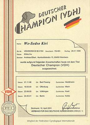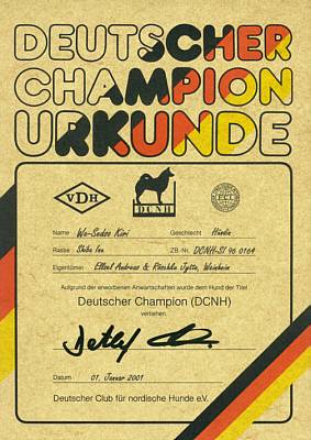 Ich bin auch "Deutscher Champion (DCNH)".Der Titel wurde mir am 1.1.2001 verliehen.Nachfolgend die Liste meiner Anwartschaften.